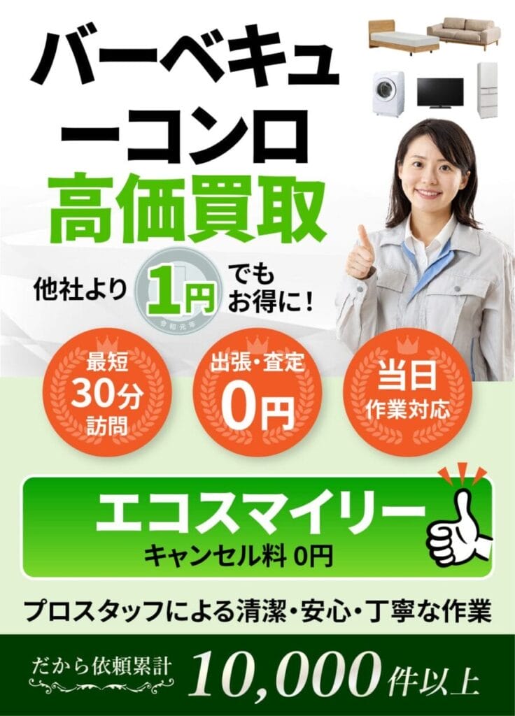地域密着10年以上の安心対応|バーベキューコンロの出張買取ならエコスマイリー 地...