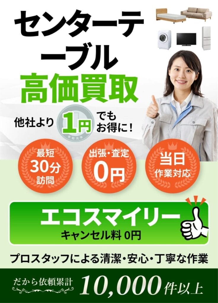 地域密着10年以上の安心対応|センターテーブルの出張買取ならエコスマイリー 地域... -