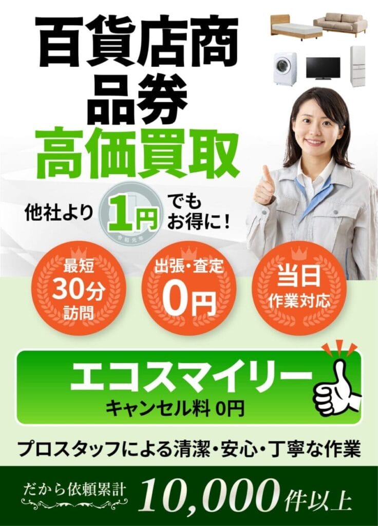 全国百貨店共通商品券の査定ならエコスマイリー|出張買取で不要品整理もスムーズ