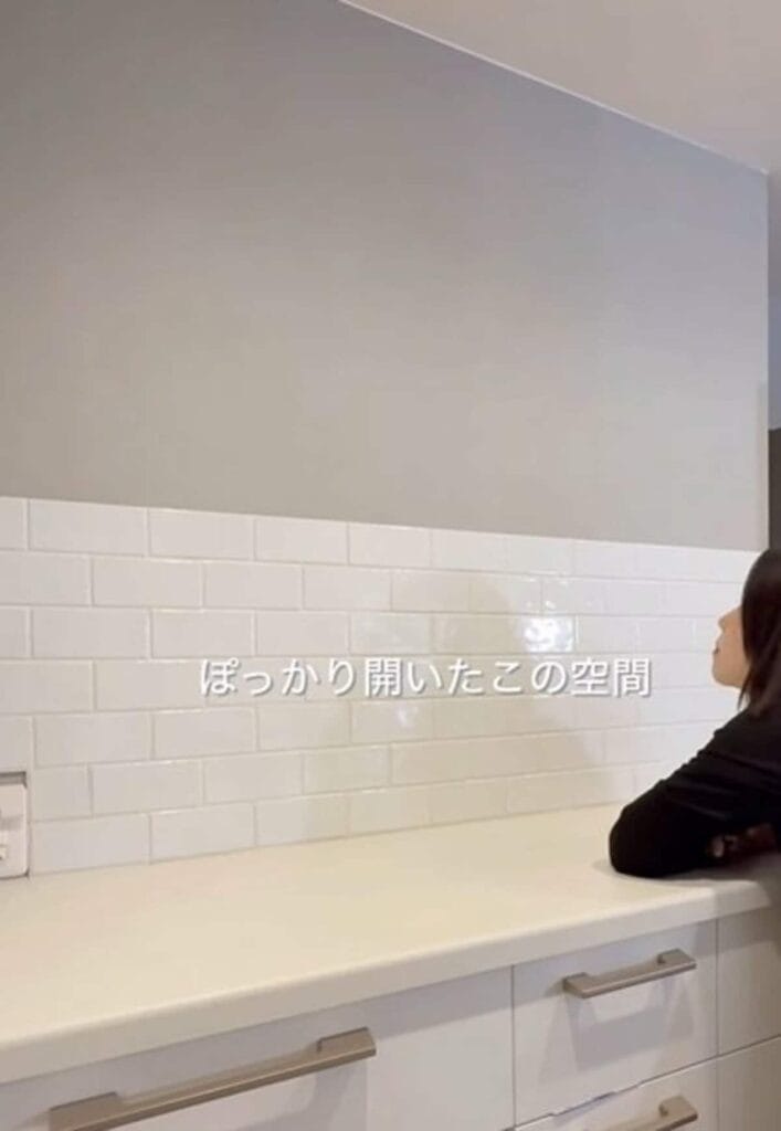 DIYテクニックを発信しているInstagramerが、キッチンのカップボード上の壁面に... -
