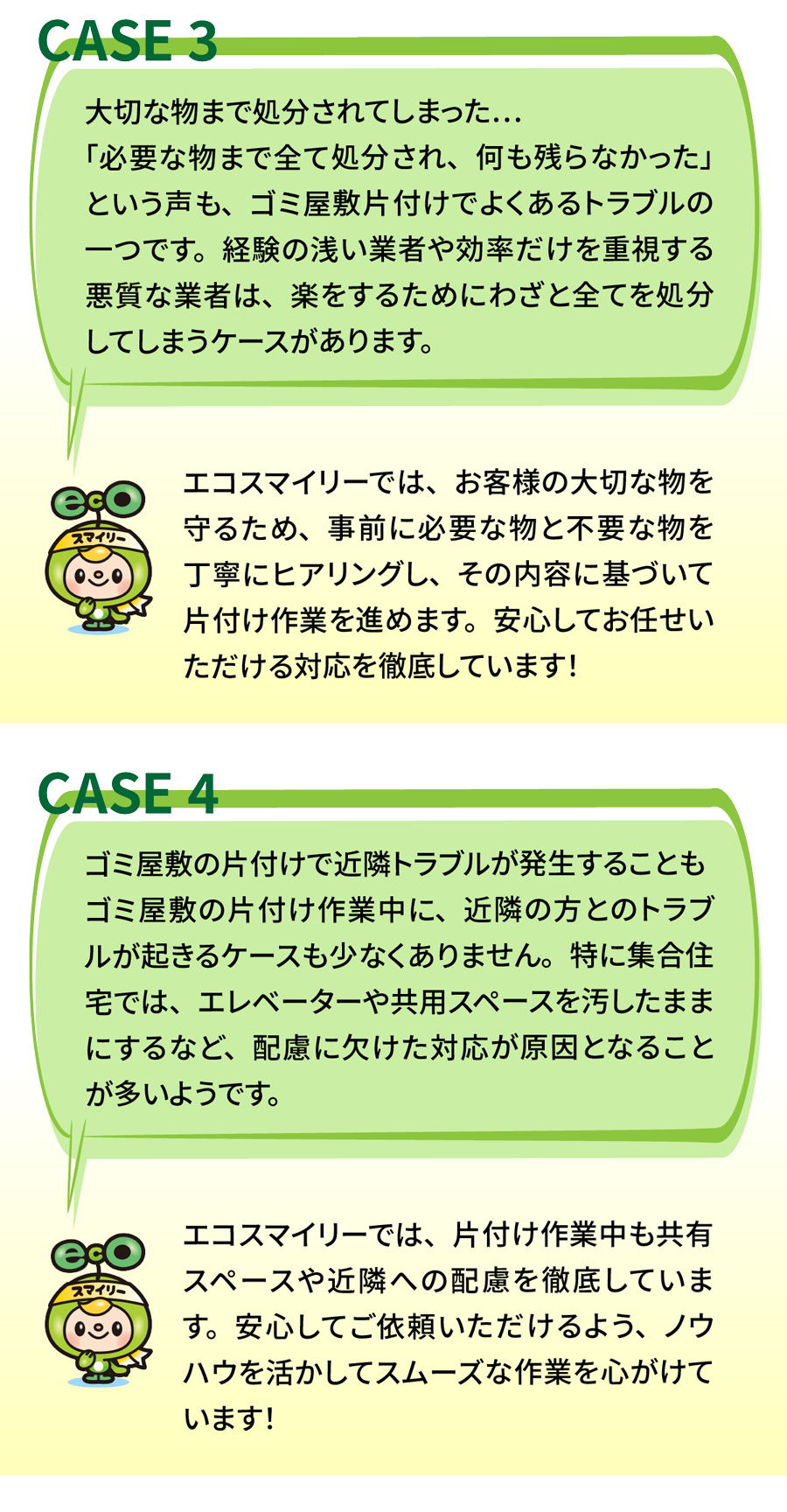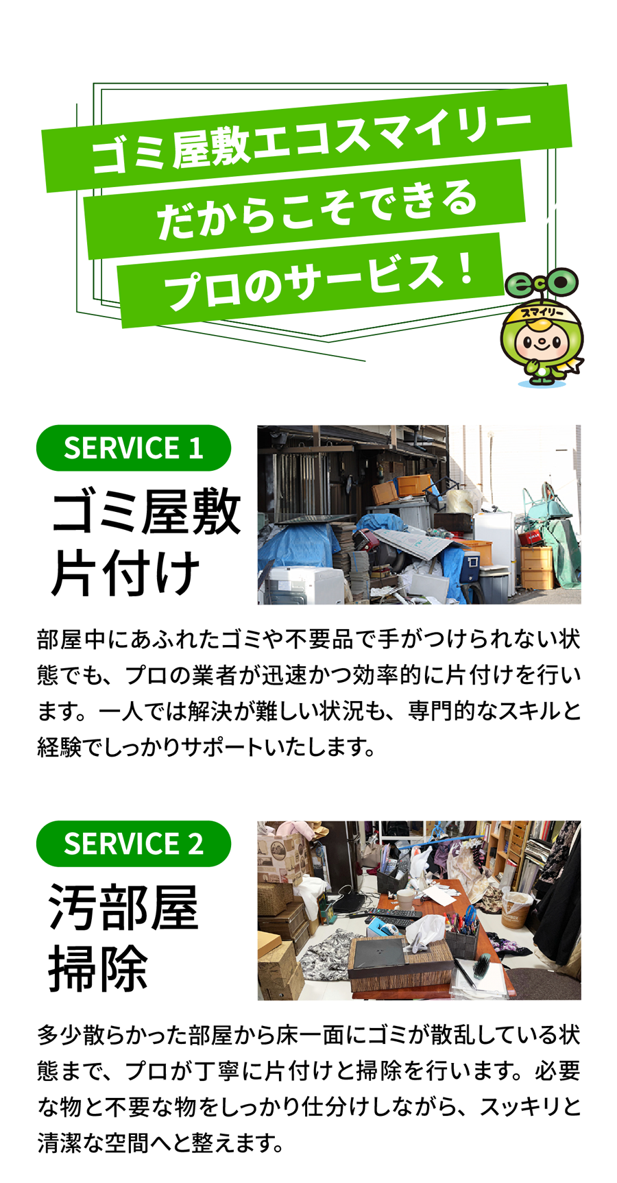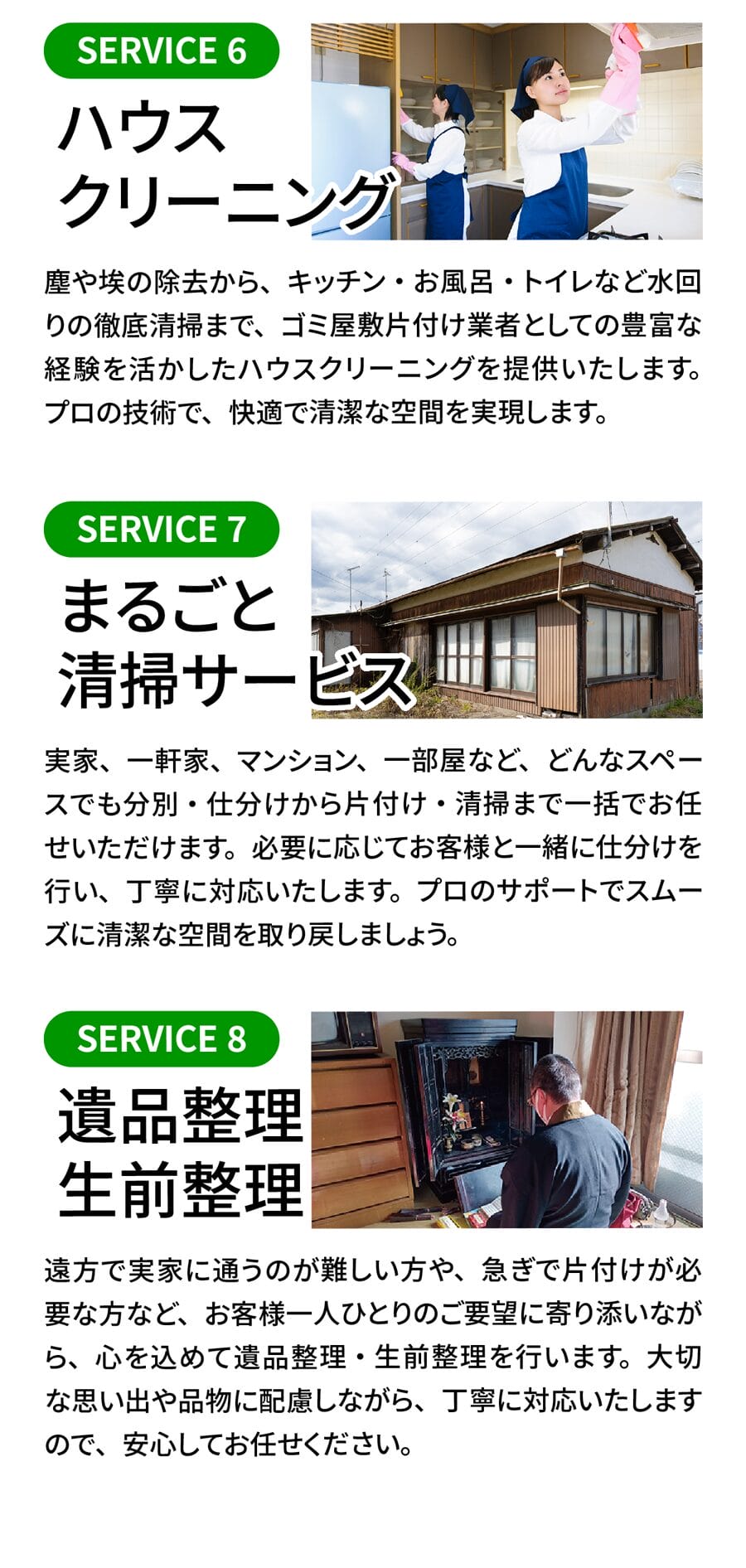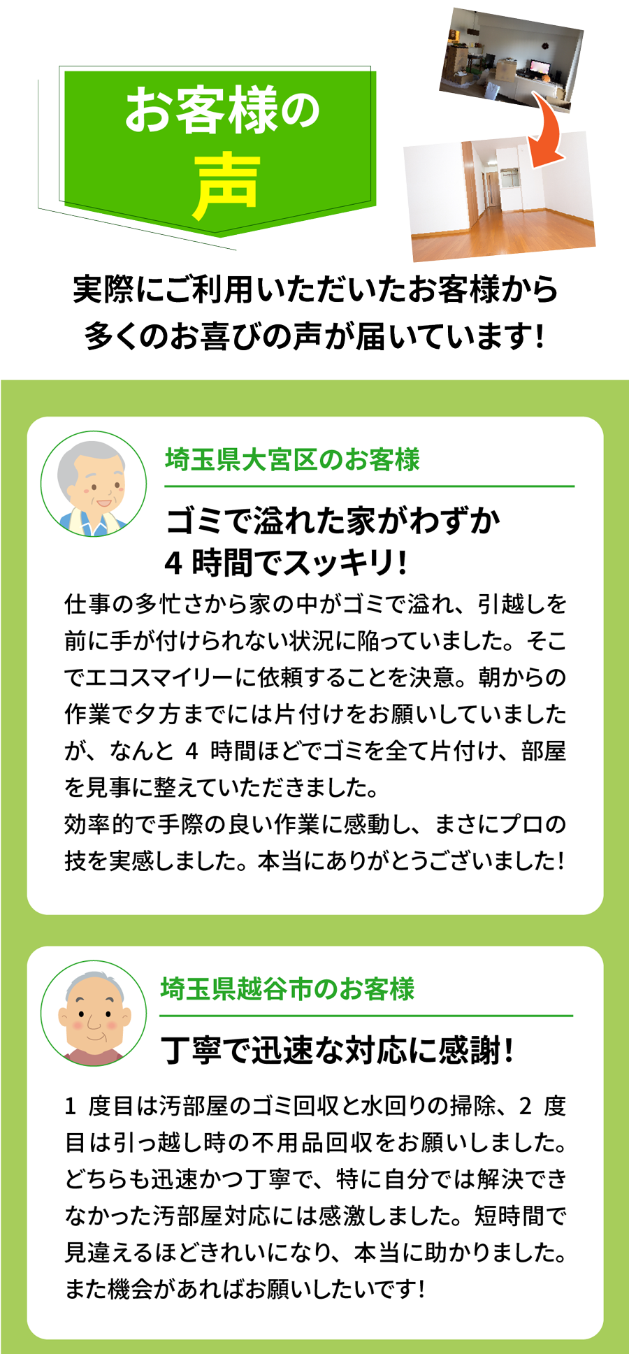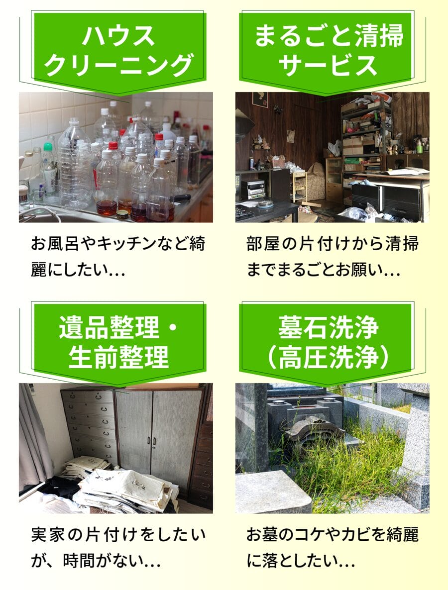 A. 対応可能です。必要に応じて消臭・簡易清掃・除菌作業も行います。