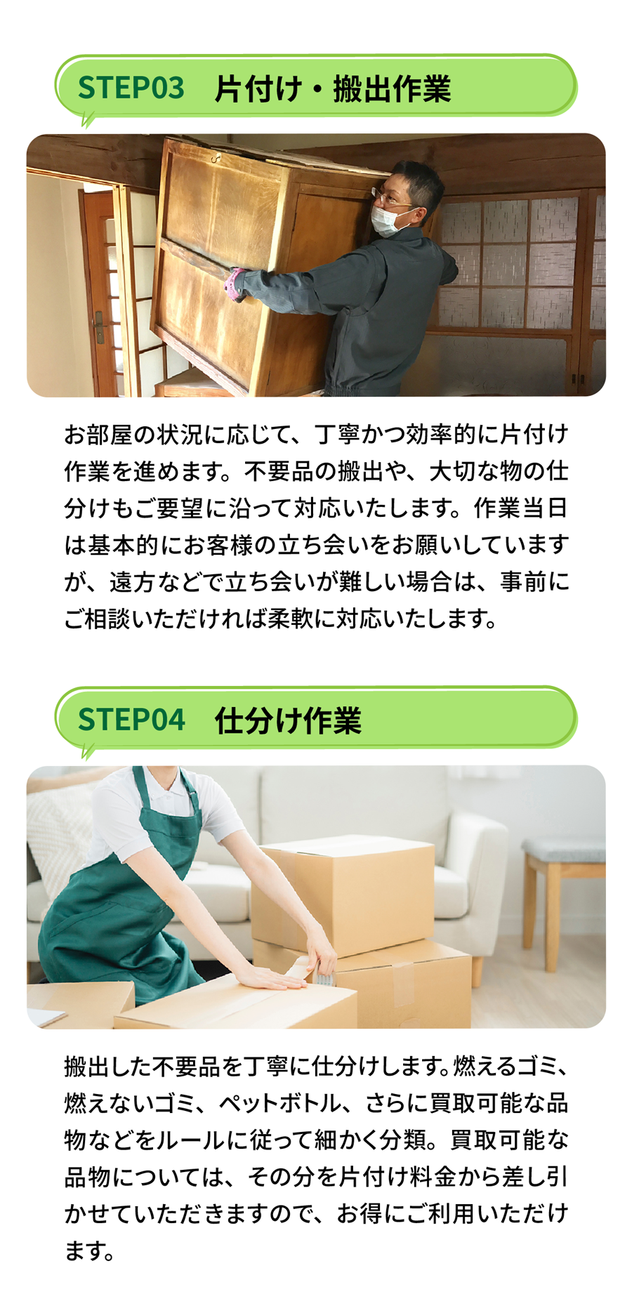 A. 不要です。仕分け・分別・搬出まですべてスタッフが対応します。