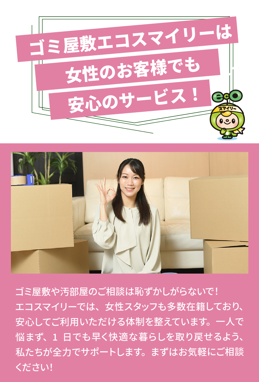 A. ご希望があれば女性スタッフ同行も可能です。安心してご相談ください。